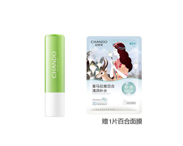 自然堂 茶萃润纹小绿管护唇膏 3g赠送雪域百合面膜1片