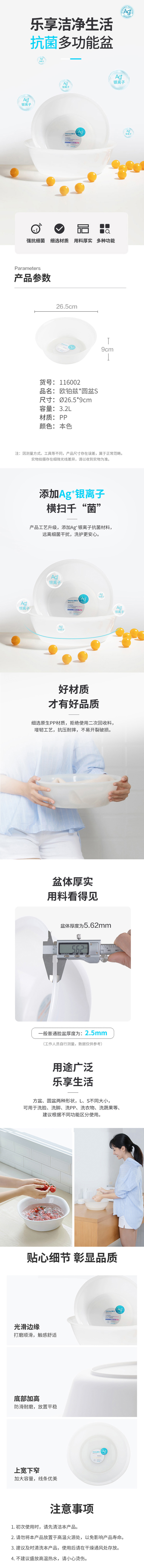 茶花 抗菌洗头洗脸盆塑料盆子洗衣盆水盆 26.5cm圆盆