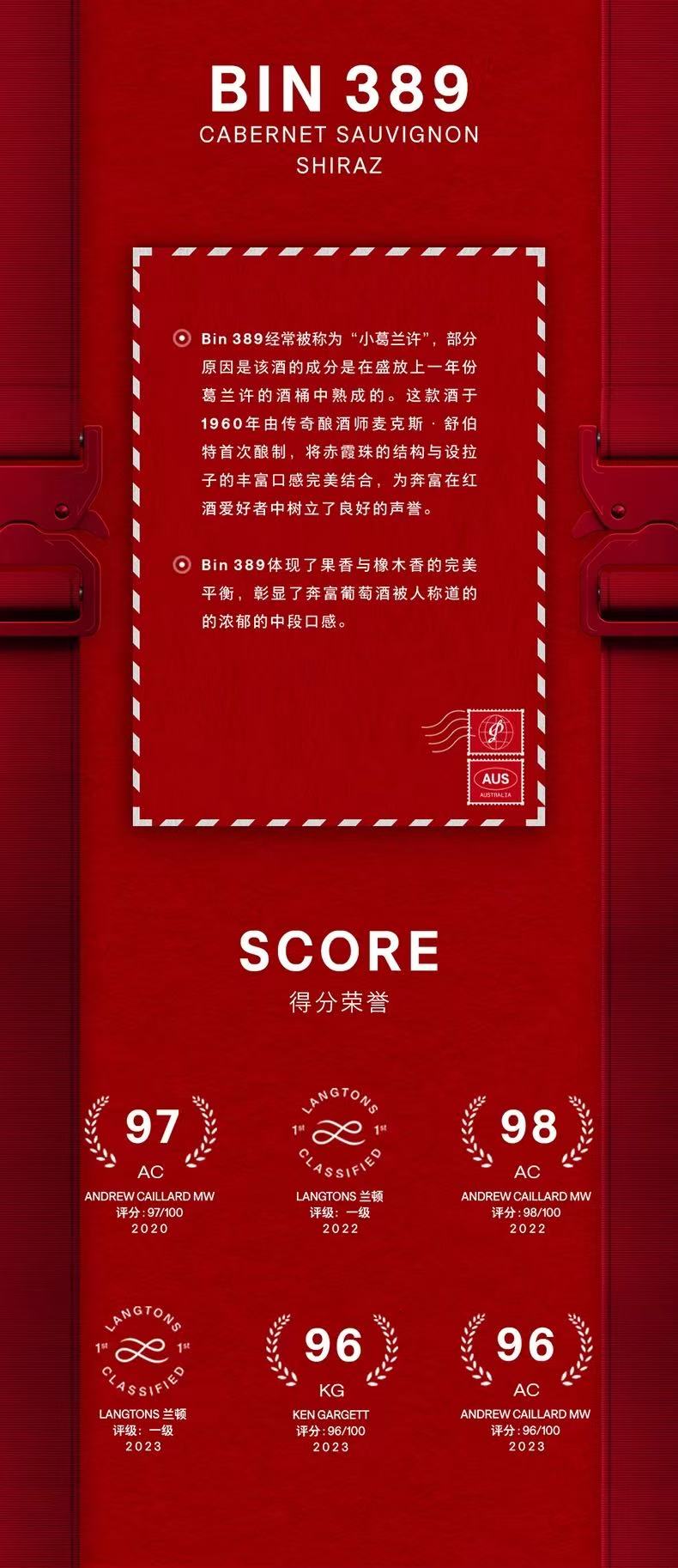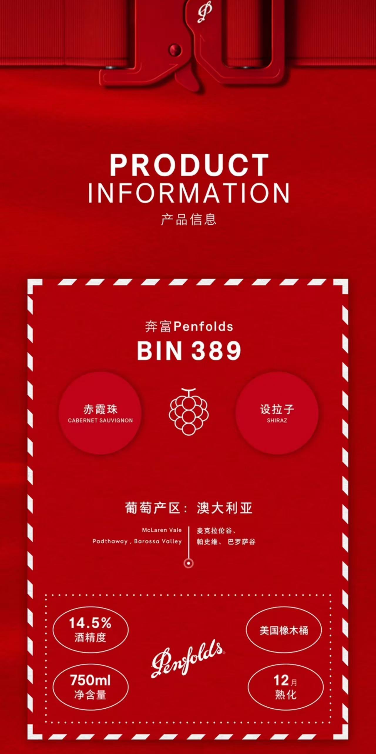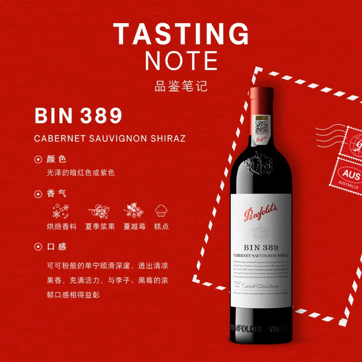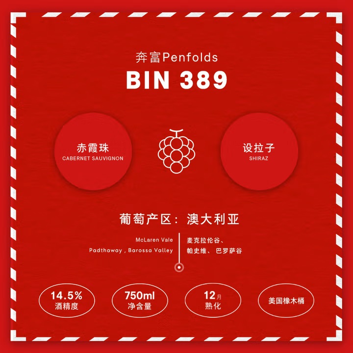奔富(Penfolds)Bin389赤霞珠设拉子干红葡萄酒 14.5%vol 750ml*1