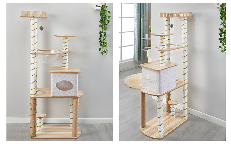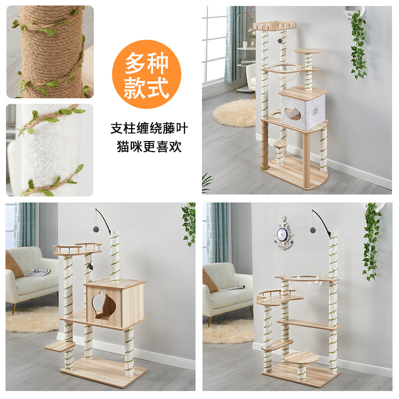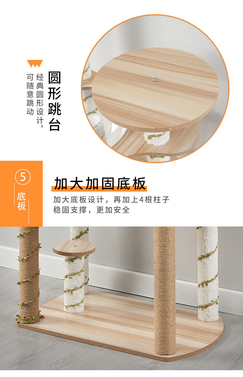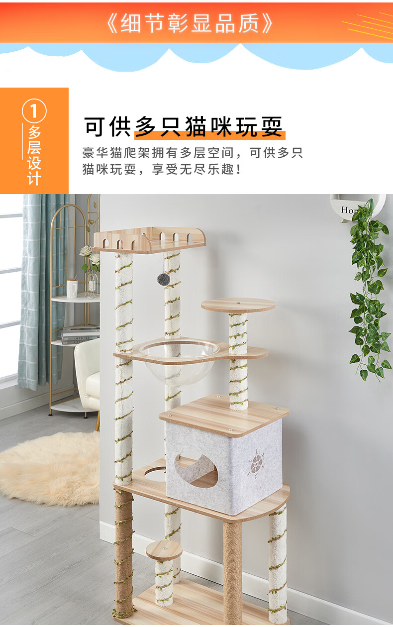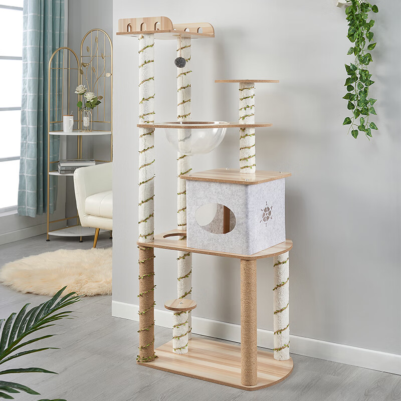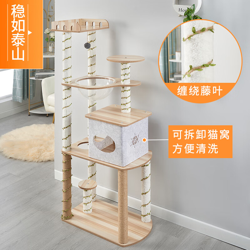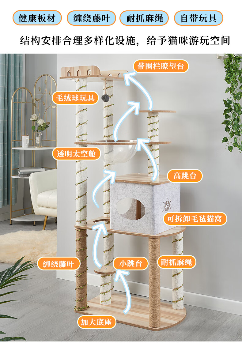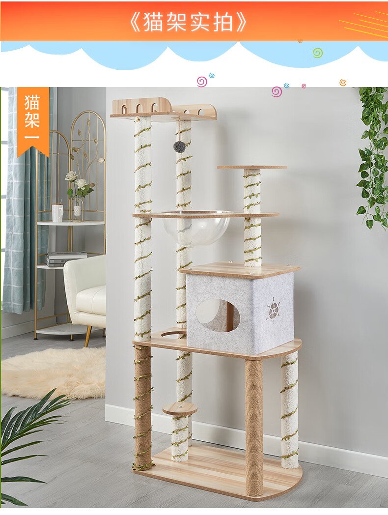 灵宠物语 太空仓猫爬架剑麻缠绕柱可水洗毛毡款大型5层猫爬架 5层猫爬架1.5米