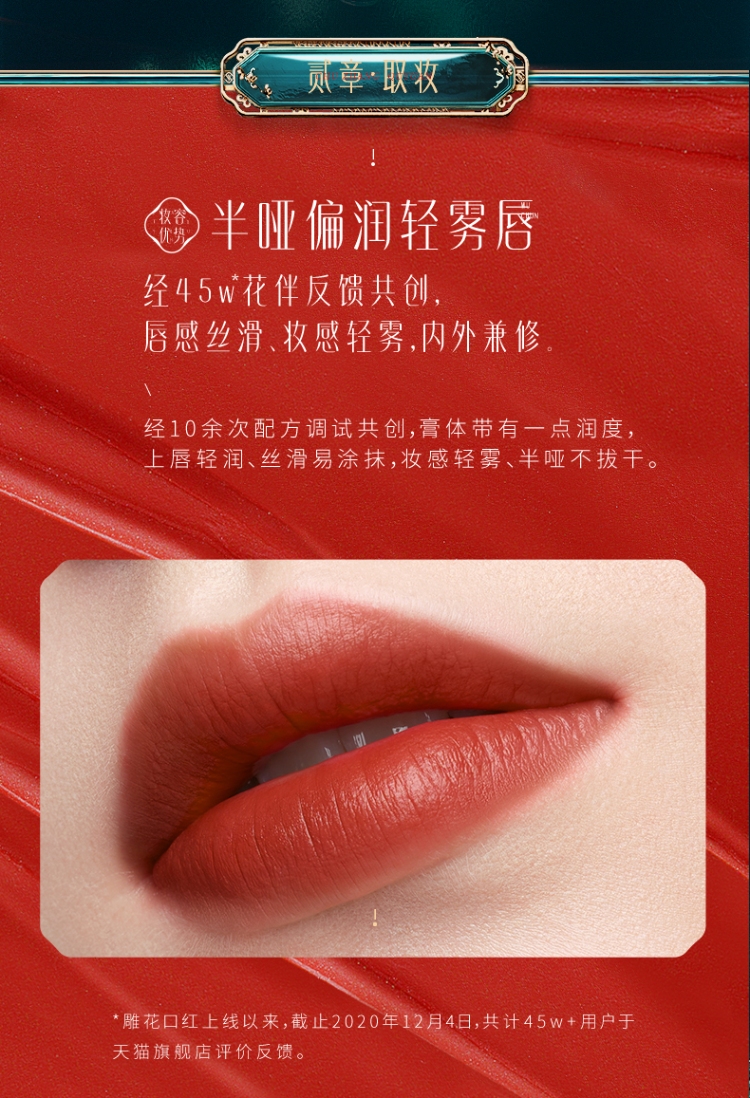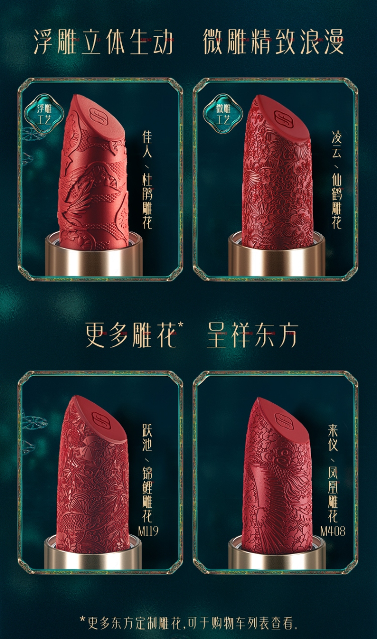 花西子 花隐星穹口红-杜鹃鸟雕花版 3.2g M117正红色