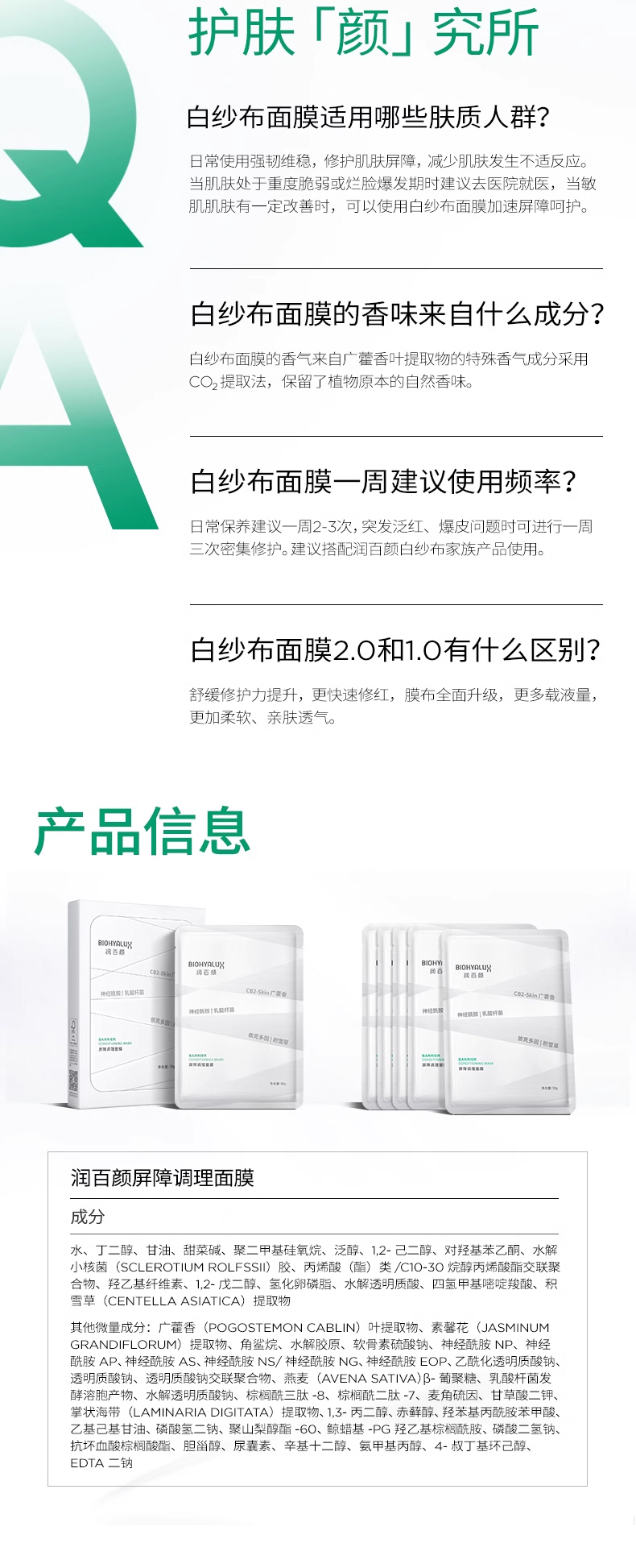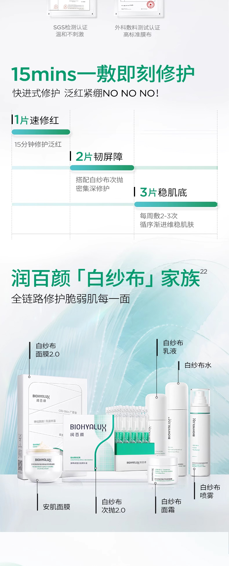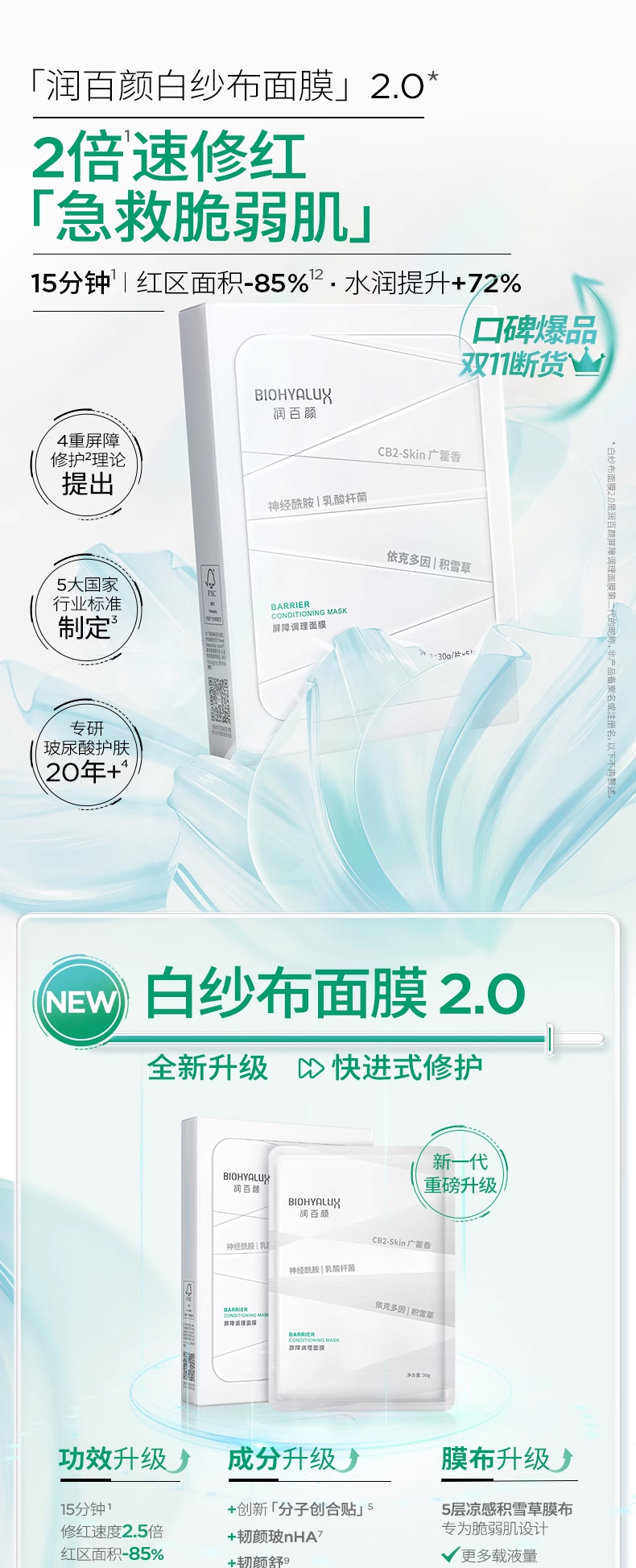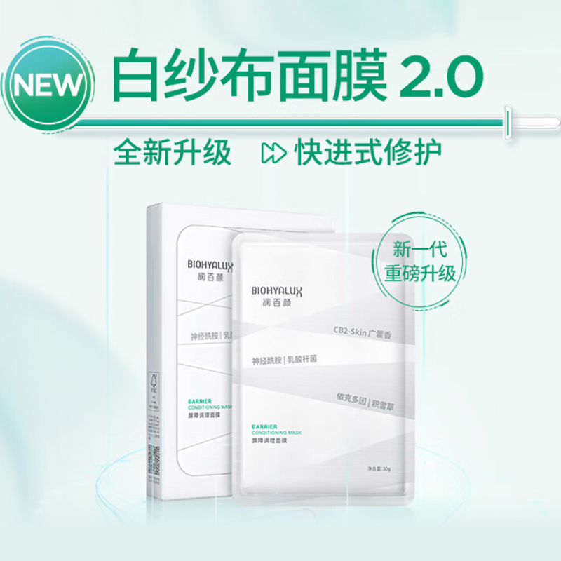 润百颜 玻尿酸屏障调理白纱布面膜 30g*5片
