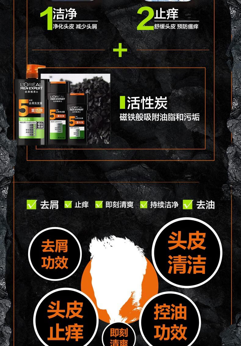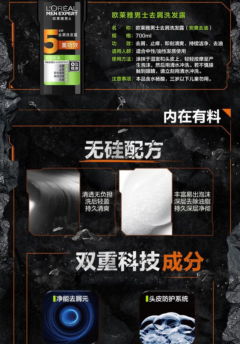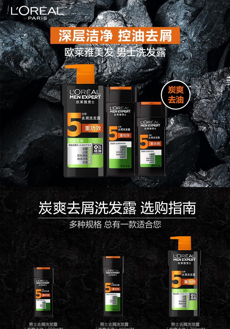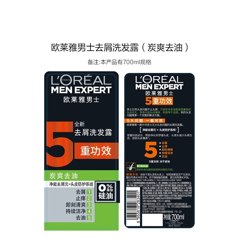 欧莱雅 男士去屑洗发露(炭爽去油) 700ml