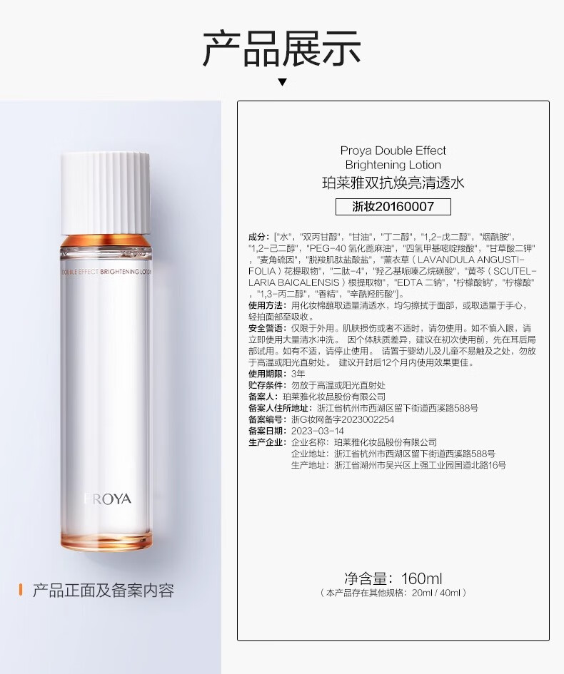 珀莱雅 双抗焕亮清透水 160ml