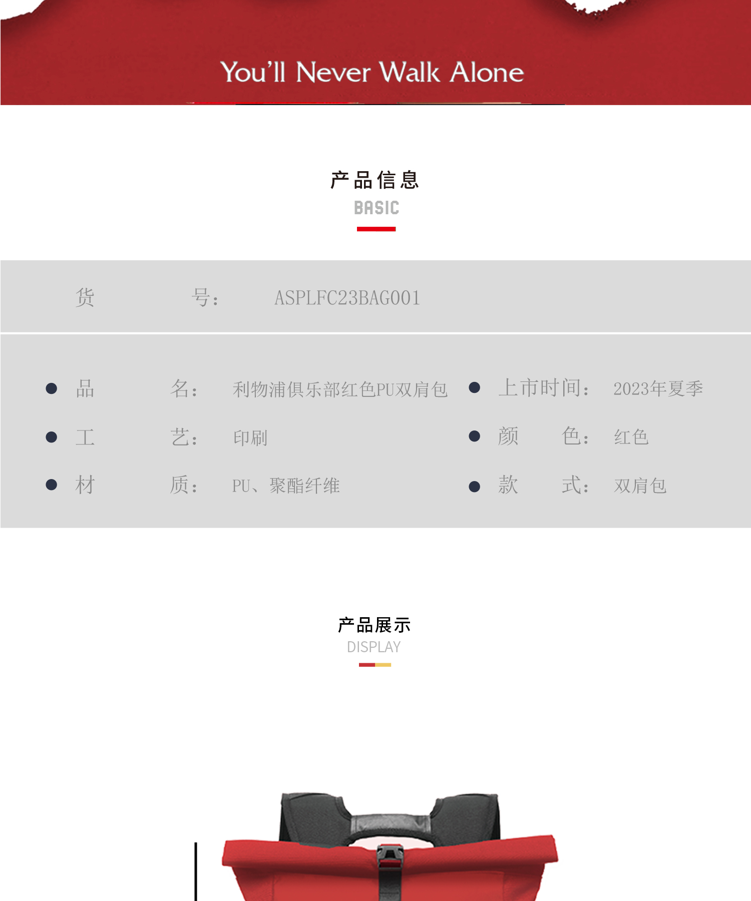利物浦俱乐部丨PU双肩包背包足球迷书包正品球迷周边 红色